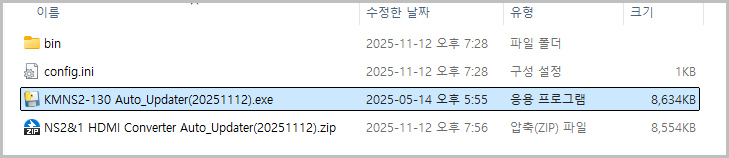 ③ KMNS2-130 Auto_Updater(20251112).exe 파일을 실행합니다.